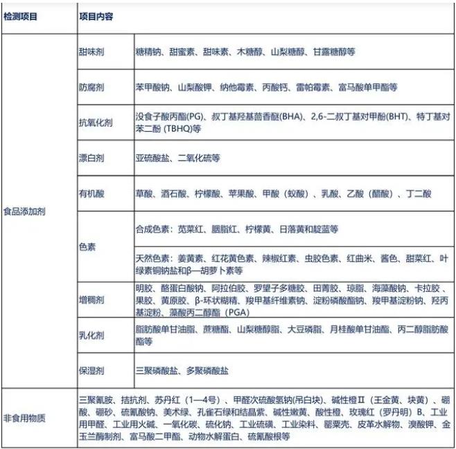 2.食品添加劑和非食品物質檢測項目